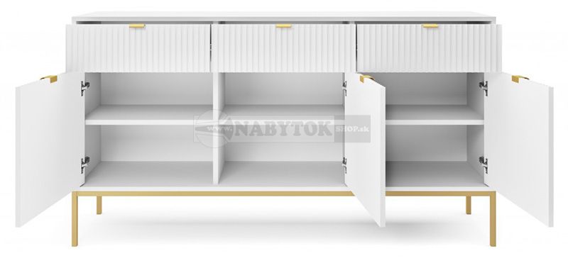 komoda AURA AU02 154 3D3S - vnútro, farba: biela / zlatá, farba úchytky: zlatá