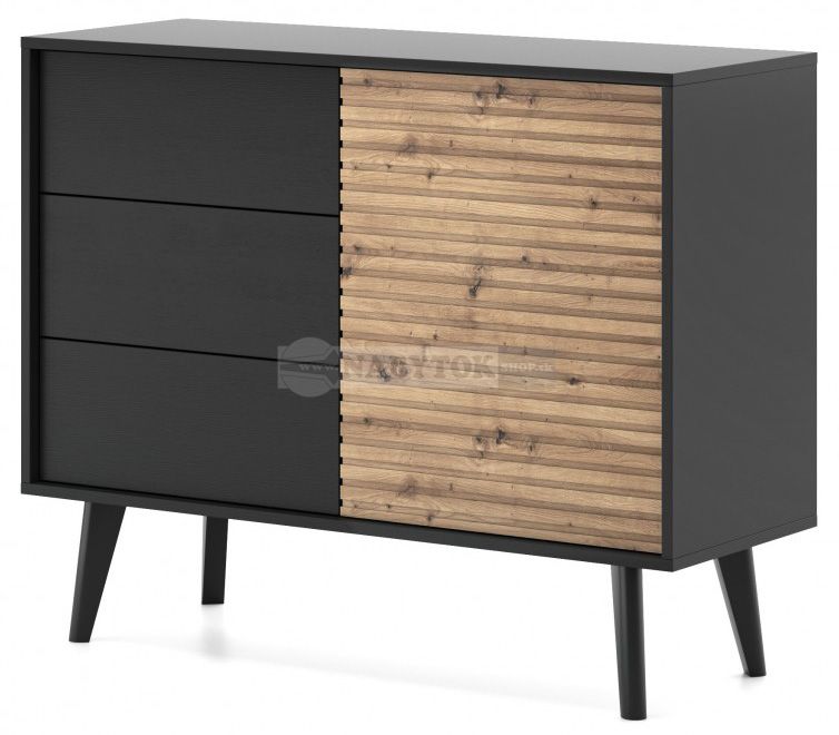 Komoda RAVENA RV02 104 1D3S, farba: dub artisan / čierna