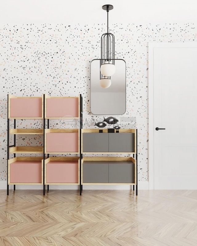 Regál MOBIUS 1D, hikora prírodná/antická ružová