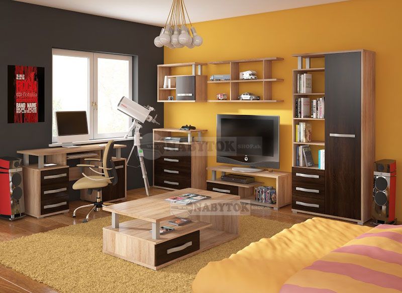 Sektorový nábytok ANGEL zostava 5, sektor: 1x ANG 05 komoda, 1x ANG 08 polica, 1x ANG 11 regál, 1x ANG 12 RTV stolík, 1x ANG 14 skrinka visiaca (bez skriňe ANG 13 a konferenčného stolíka ANG 07, možnosť dokúpiť)