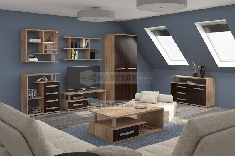Sektorový nábytok ANGEL zostava 6, sektor: 1x ANG 01 skriňa, 1x ANG 05 komoda, 1x ANG 13 skriňa (bez RTV stolíka ANG 12 a konferenčného stolíka ANG 07, možnosť dokúpiť)