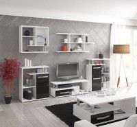Sektorový nábytok ANGEL zostava 1, sektor: 1x ANG 08 polica, 1x ANG 09 regál nízky, 1x ANG 11 regál, 1x ANG 12 stolík RTV, 1x ANG 15 vitrína visiaca (bez LED osvetlenia do vitríny visiacej ANG 15 a bez konferenčného stolíka ANG 07, možnosť dokúpiť)