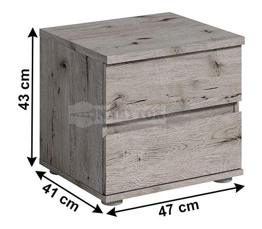 Nočný stolík TOGOS je s dvoma zásuvkami. Stojí na nízkych nožičkách (2ks/bal.),