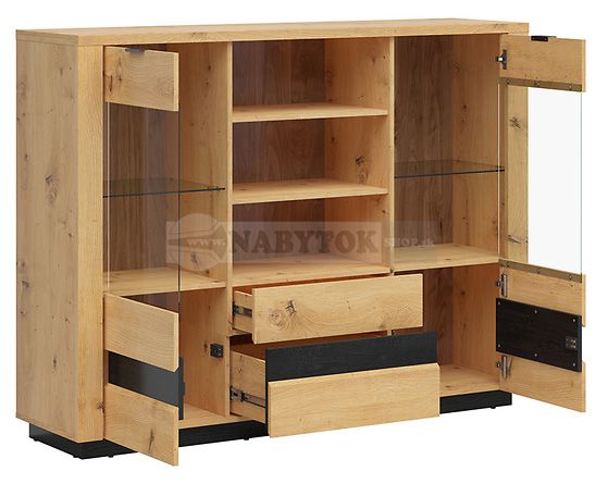 farba: dub artisan/dub čierna, vitrína OSTIA KOM2W2S-DASN-CABL - ilustračný obrázok